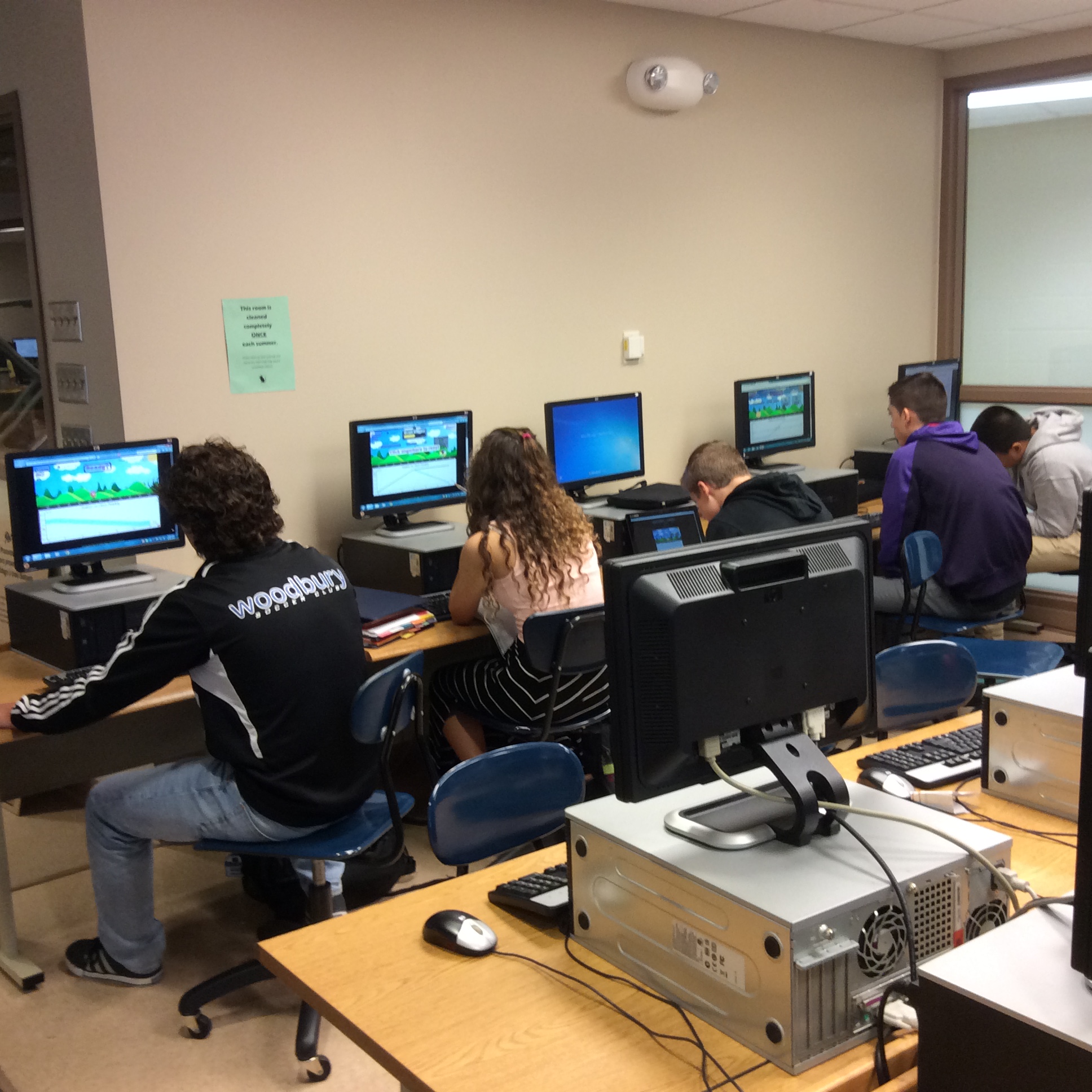 To get a little more practice with position vs. time graphs before we move on to free fall, the class went to the library to play Matt Blackman’s Action Graphing. My strongest students whipped through the early levels and got some exposure to velocity vs. time graphs as well as some calculations on graphs that show acceleration, which I normally don’t go into in this course due to time. Some of my students who need a little more time to master things started out using a lot of guess and check in the game, but were able to calculate correctly and consistently by the end of the period.