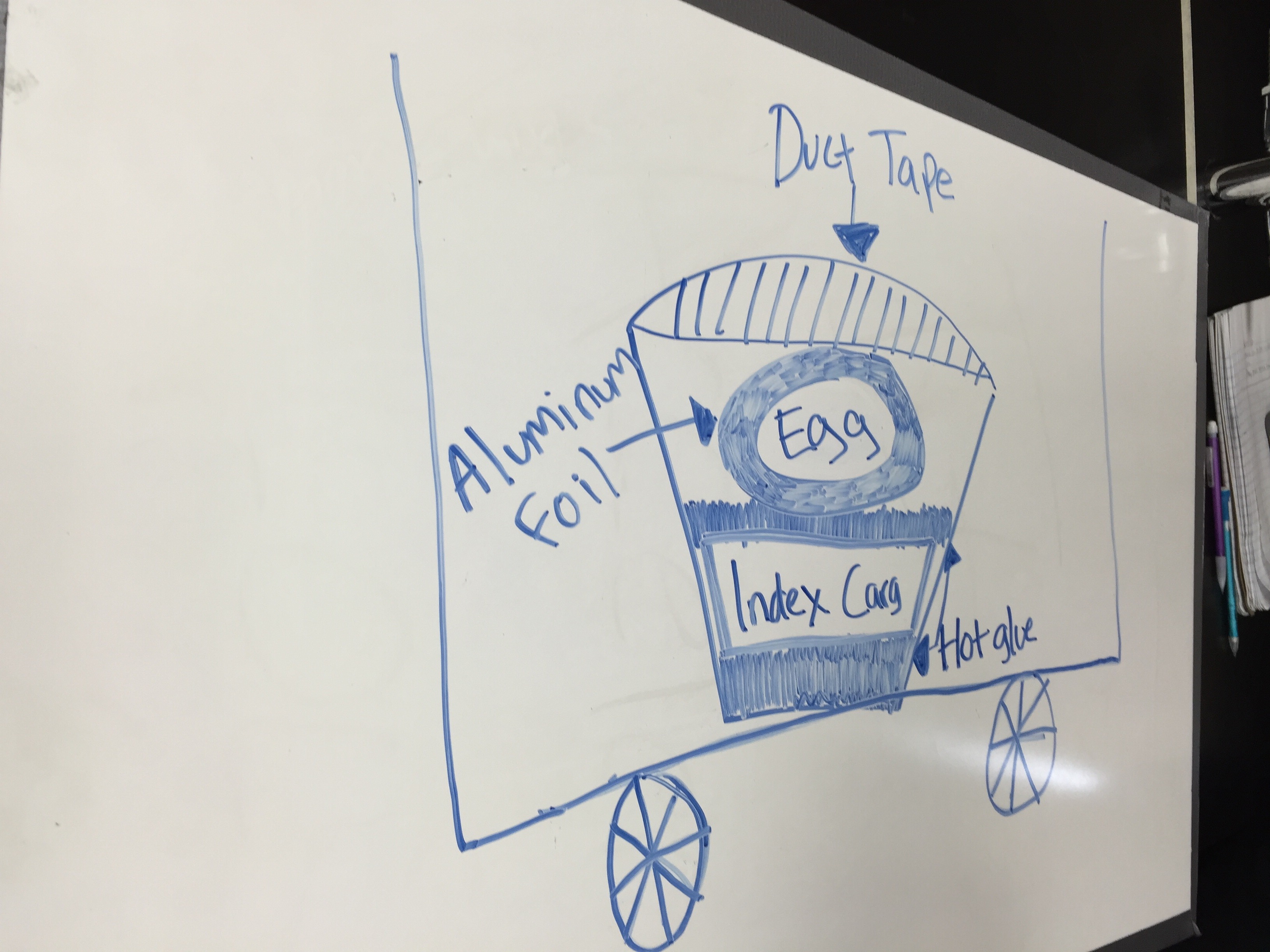 Now that groups have a plan for how they will test the second iteration of their design, they worked on actually planning that design. Compared the first time around, there was a lot more conversation about the different ways designs could fail. There was also a lot of talk about what had and hadn’t worked in the first iteration. At the end of the hour, each group paired up with another to share their testing plan, their design, and a justification for their design.