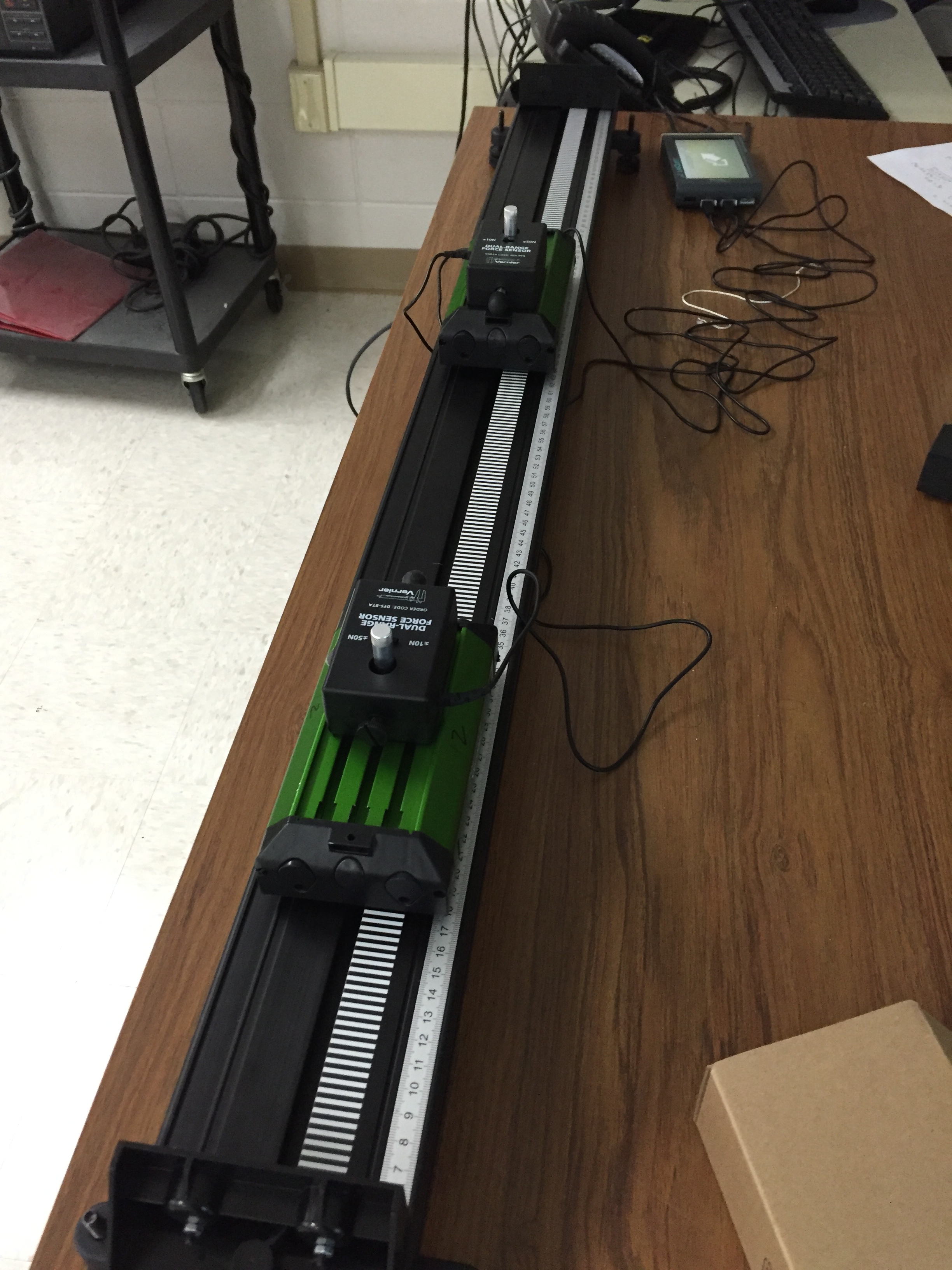 Students made free body diagrams for a variety of scenarios with two carts colliding, then predicted which cart would experience the greater force. After students had worked, we used a pair of force sensors to test their predictions. I’d also planned to show Frank Noschese’s great video of cart collisions, but ran out of time, so I’ll start with that on Monday. There were some great debates when students were working on their predictions, though students were more insistent than usual that I should step in and tell them who was right. This provided a good opportunity to talk with my classes about what we know is needed to really internalize a new concept, which helped alleviate some of the frustration with my non-answers.