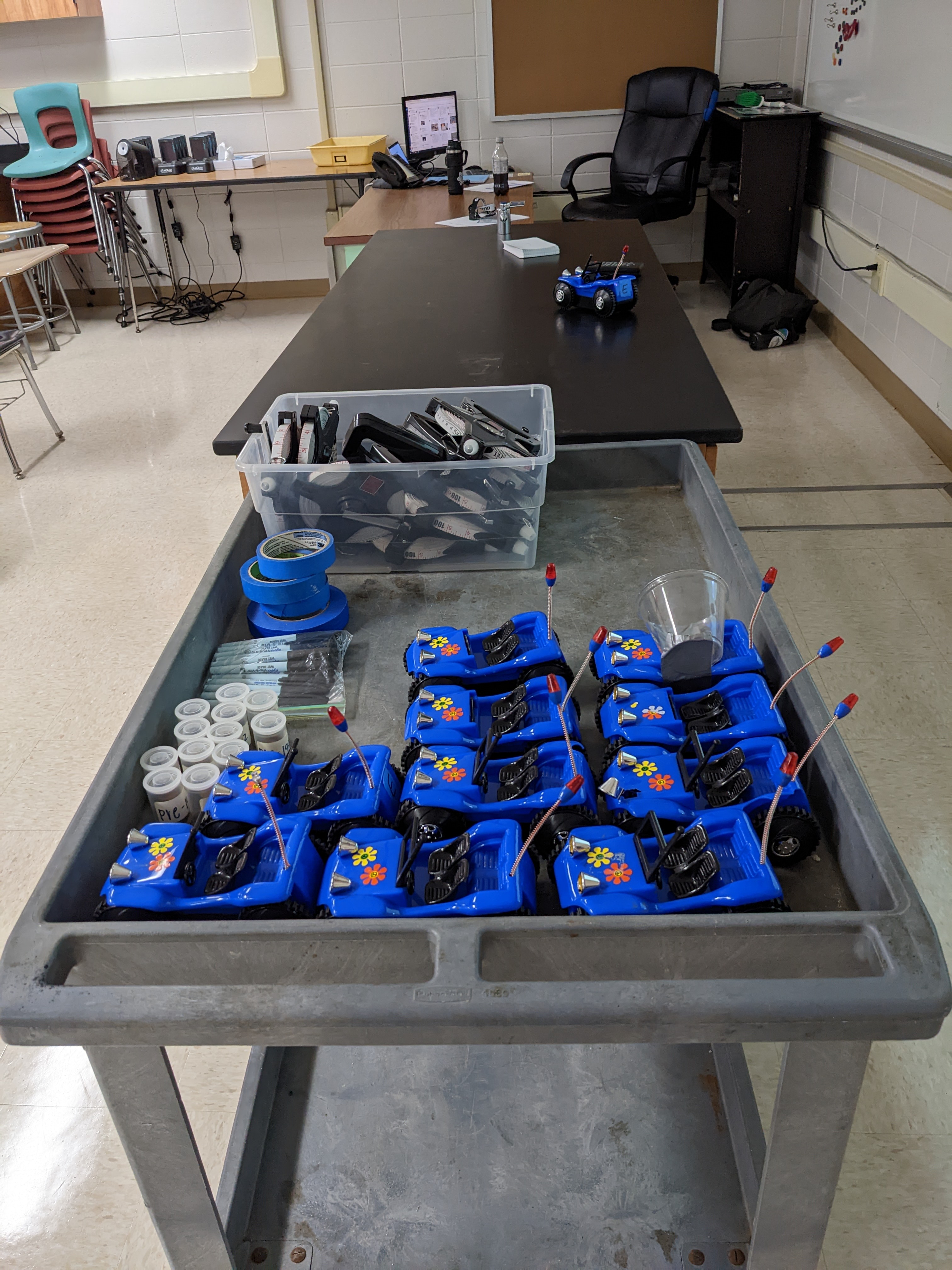 We wrapped up the week by predicting where two buggies would collide. I told students there was a range of possible approaches, and one group took that as a challenge to find as many different approaches as they could. A homecoming pepfest on Friday meant we ran short on time to have students share how they approached the practical, but I want to make sure and revisit that next week.