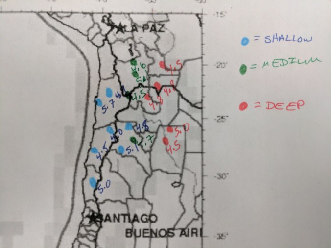 This unit includes a learning target about types of faults. Students built paper fault blocks to explore different fault types. I liked giving them a manipulative, but it was tricky for them to make sense of how the pieces related before they were assembled. Next time, I might number the layers on each side of each piece before I run copies to make that a little clearer.